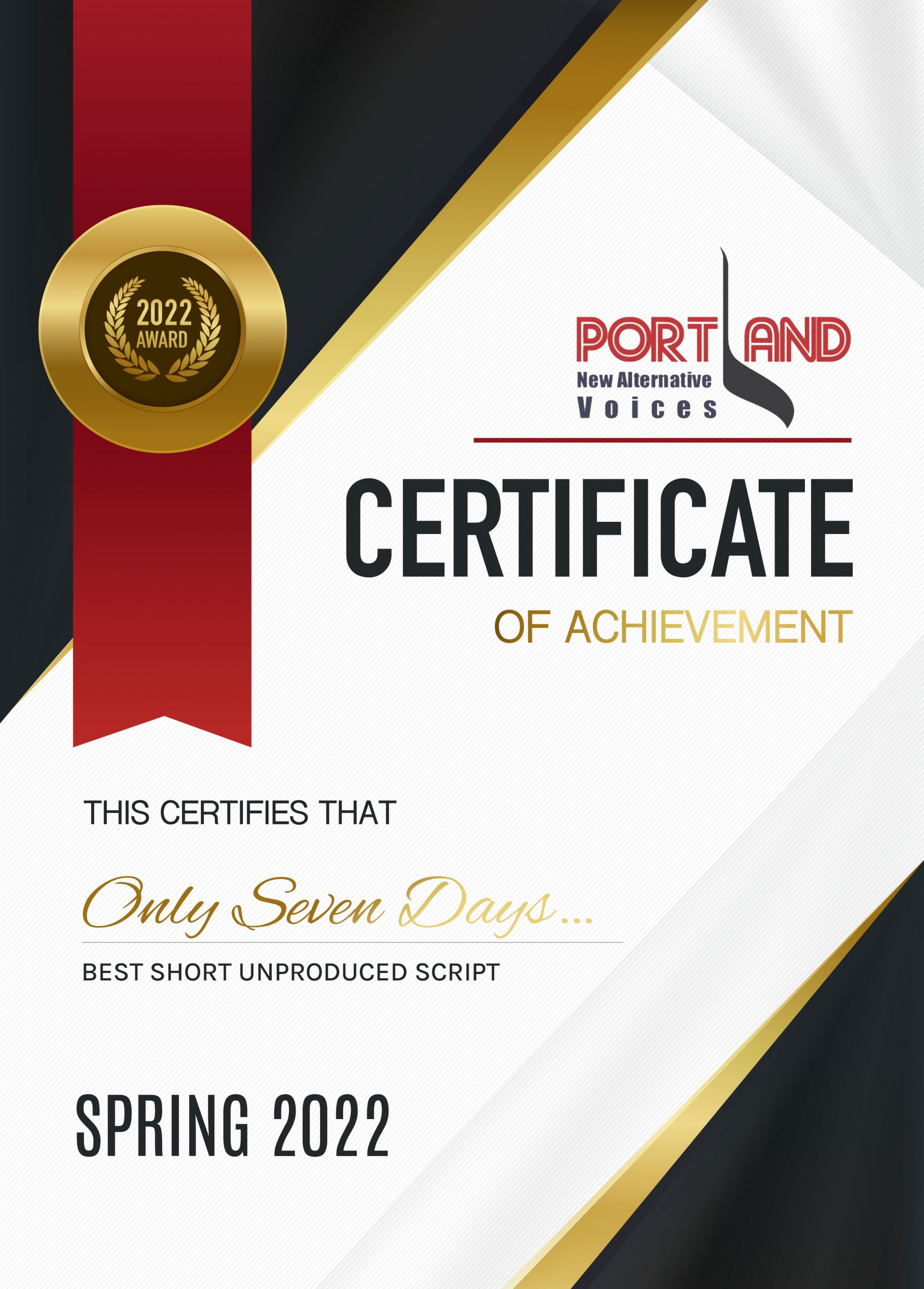 Screenplay Award Certificates / 2022.05.05